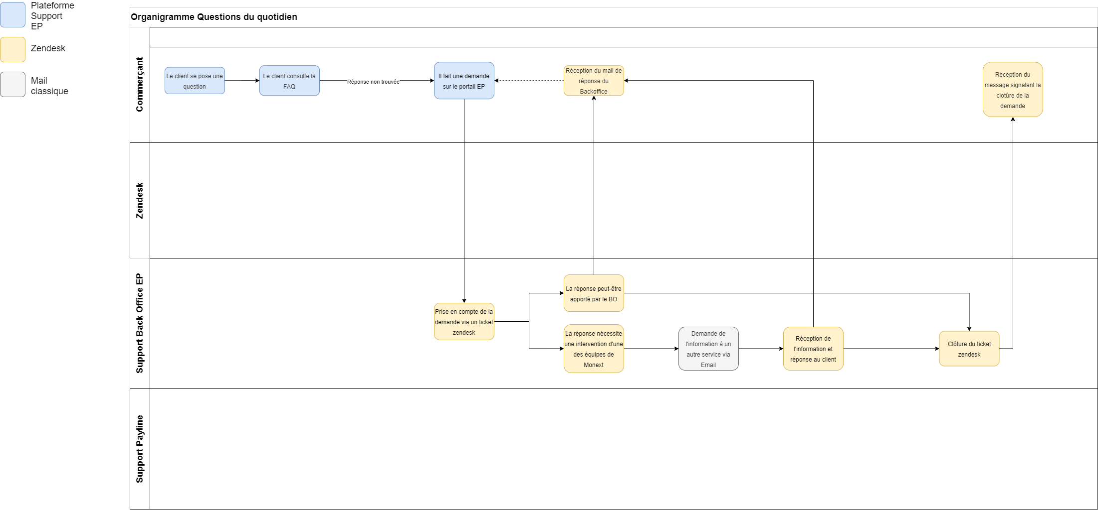 La procédure Questions du quotidien précise les échanges entre le client commerçant et l'équipe backoffice Monext en se reposant sur l'utilisation de Monext