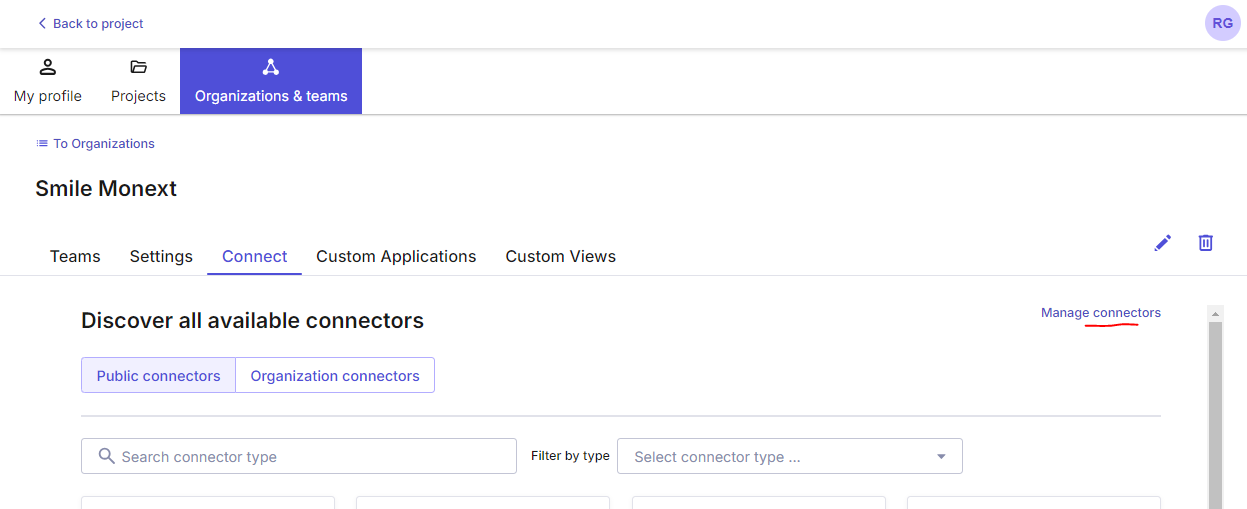 Project menu > Organizations & teams