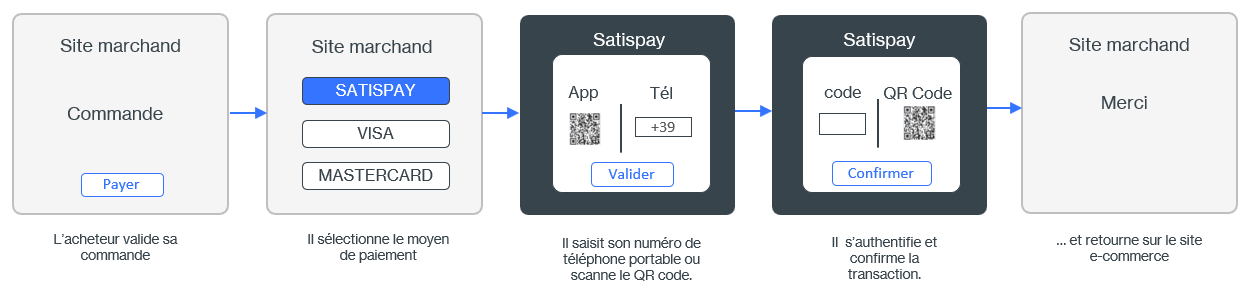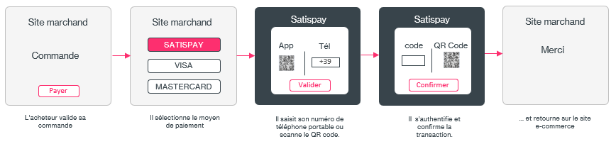 - Il sélectionne le moyen de paiement Satispay.