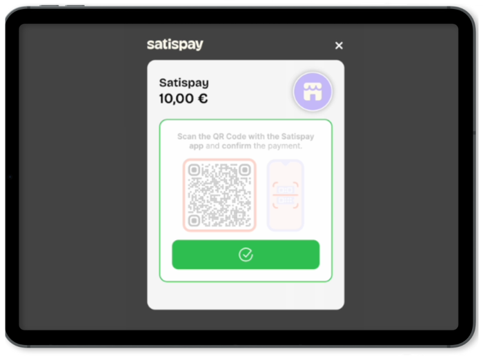 2. L'acheteur scanne le QR Code proposé avec son application mobile Satispay et confirme sa commande sur l'application mobile.