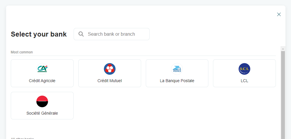2. L'acheteur est redirigé pour sélectionner sa banque