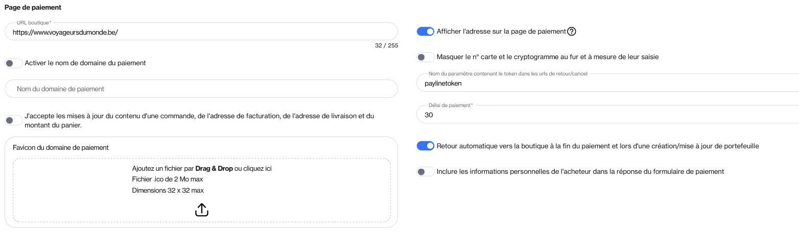 | URL de la boutique | L’adresse internet du commerce. URL du commerçant : une fois enregistrée, elle n'est plus modifiable. Cette URL peut être contrôlée par l'acquéreur. |