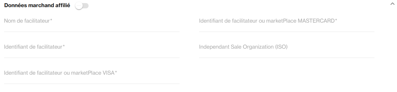 Données marchand affilié Un facilitateur de paiement assure l’encaissement des opérations auprès d’un acquéreur pour le compte de ses commerçants affiliés : Payment Facilitator. | |
