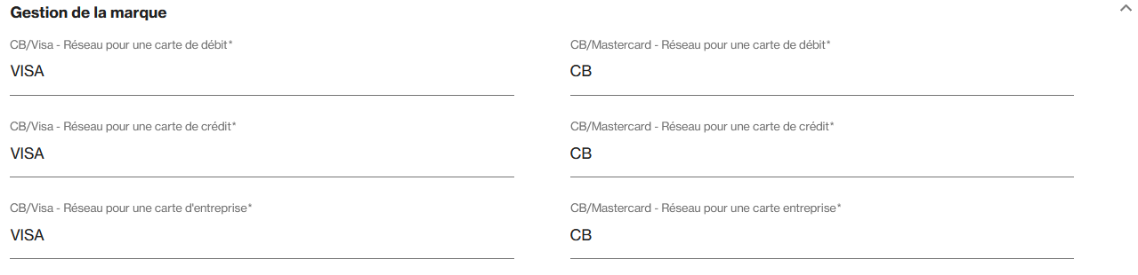 Gestion de la marque Configuration du choix de la marque de la carte bancaire : voir Choix de la marque (version <= 24.8) | |