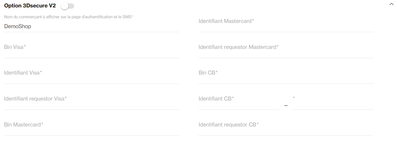 - Enrôlement 3DSecure et Option 3Dsecure ;
