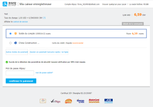 Le moyen de paiement Alipay
