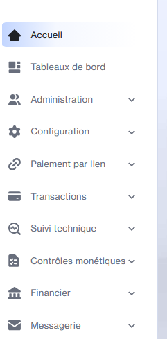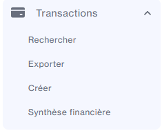 | Ce menu donne accès à tout ce qui concerne les transactions de paiement |