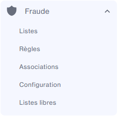 | Ce menu permet la gestion des listes Grises et de définir par vous-mêmes vos règles de lutte contre la fraude. Il apparait à la souscription de l'option LCLF ou Mes actions anti-fraude. |