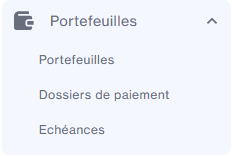 Ce menu donne accès aux portefeuilles virtuels de vos clients ainsi qu'aux dossiers de paiement multiple : paiement en plusieurs et paiement par abonnement. Il apparait à la souscription de l'option Paiement Récurrent. | |