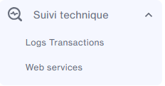 Ce menu permet d'effectuer un suivi technique des transactions en erreur de format ainsi que des appels web services effectués sur Monext Online. | |