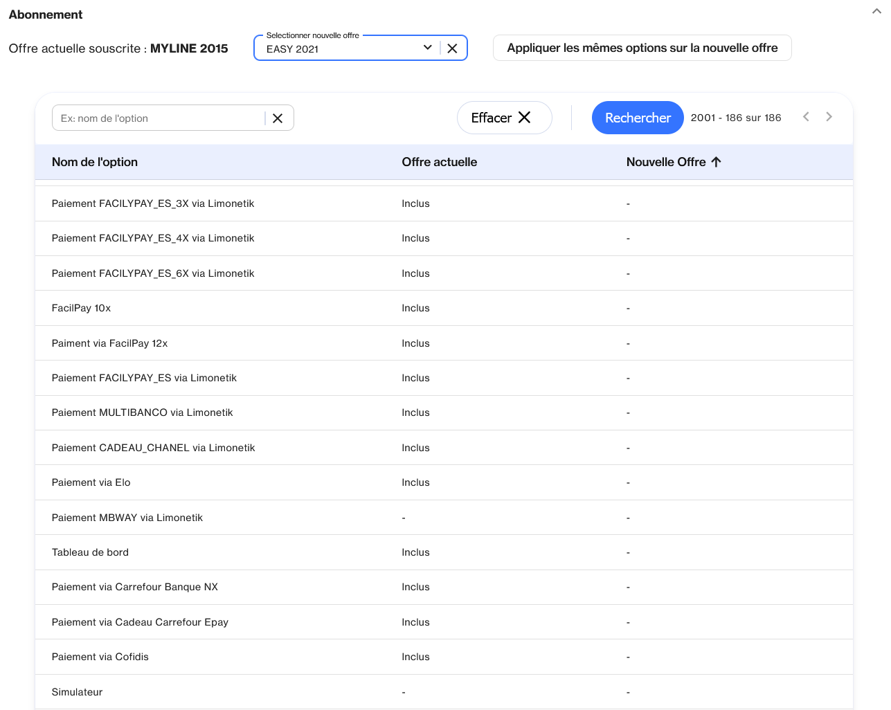 - Pour modifier un abonnement, d'abord vous devez sélectionner une nouvelle offre :