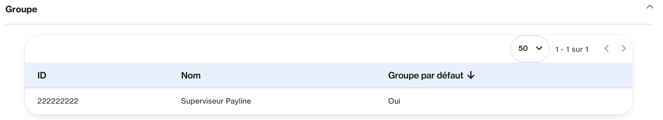 Vous pouvez également obtenir la liste des groupes dans le détail du commerçant. Cette fonction permet également de connaitre le groupe par défaut.