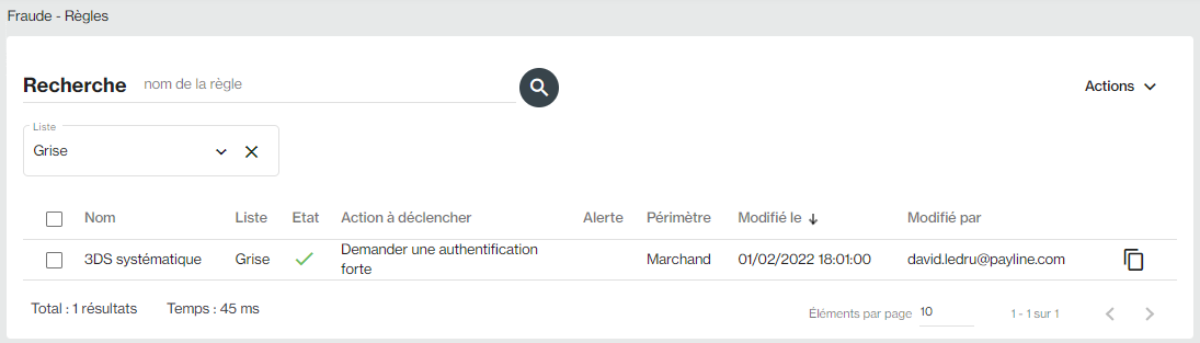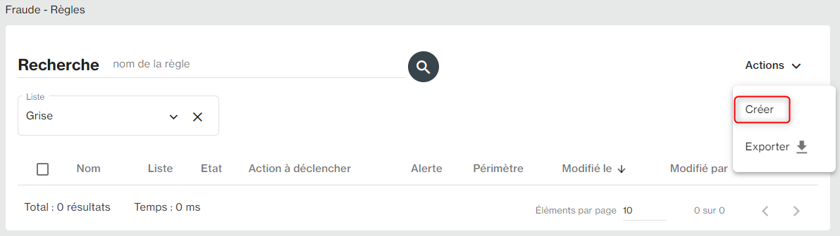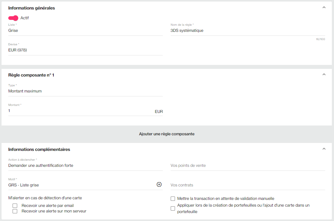 Maintenant que vous avez paramétré les conditions de mise en liste automatique de façon à ce que les éléments à risque passent en liste grise, il vous faut paramétrer une ou plusieurs règles pour cette liste afin d'appliquer un contrôle fraude systématique.