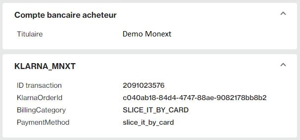 Vous retrouvez les transactions dans les rapports suivants ci dessous avec le card_code = KLARNA_MNXT.