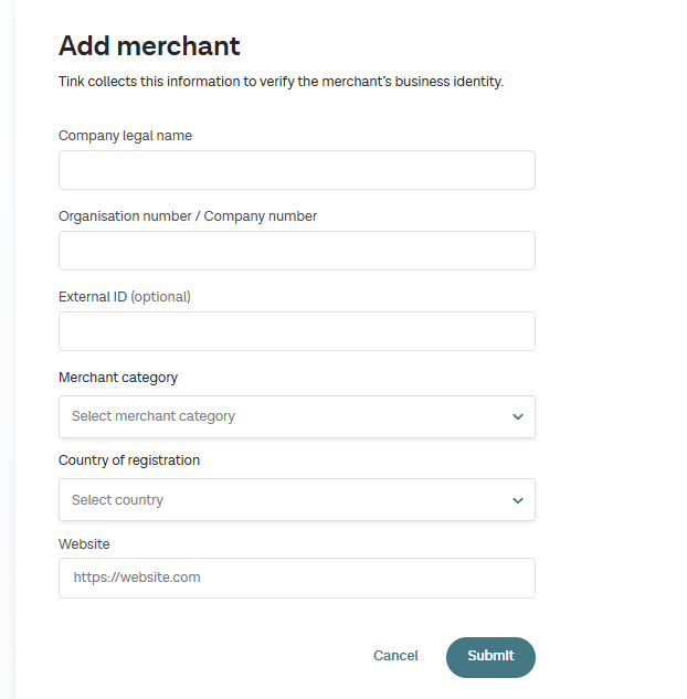 - Pending: The merchant has not yet been screened. This can be due to a technical issue on Tink's side and an edge case.