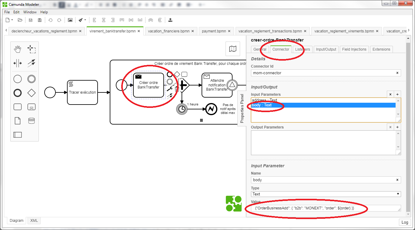 Exemple d'appel au MOM dans virement_banktransfer.bpmn / Tâche "Créer ordre BankTransfer" :
