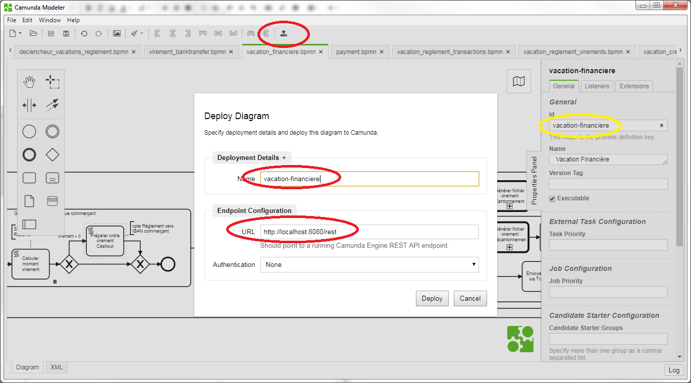 Modeleur pour édition des diagrammes BPMN: https://camunda.com/download/modeler/
