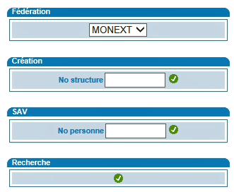 S'assurer que la fédération soit 'MONEXT' et saisir le N° de structure : 028200.