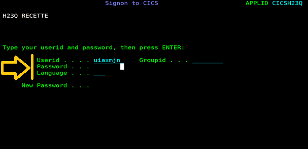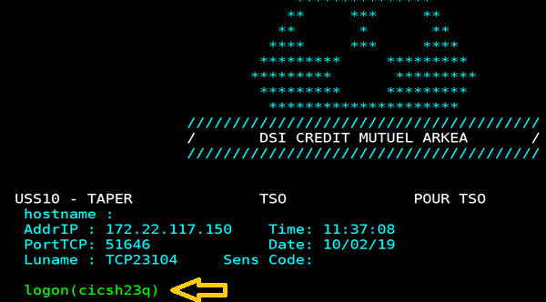 Sur le MainFrame DSI Crédit Mutuel ARKEA, lancer l'application CICS en tapant : 'logon(cicsh23q)'