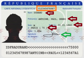 S'assurer également que le justificatif d'identité transmis est en cours de validité et que la signature n'est pas trop différente de celle du signataire du contrat (Flèches vertes)