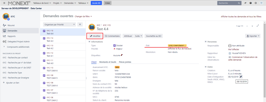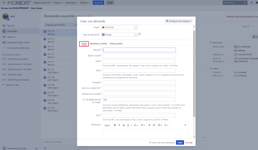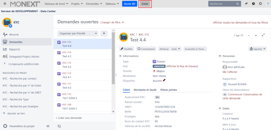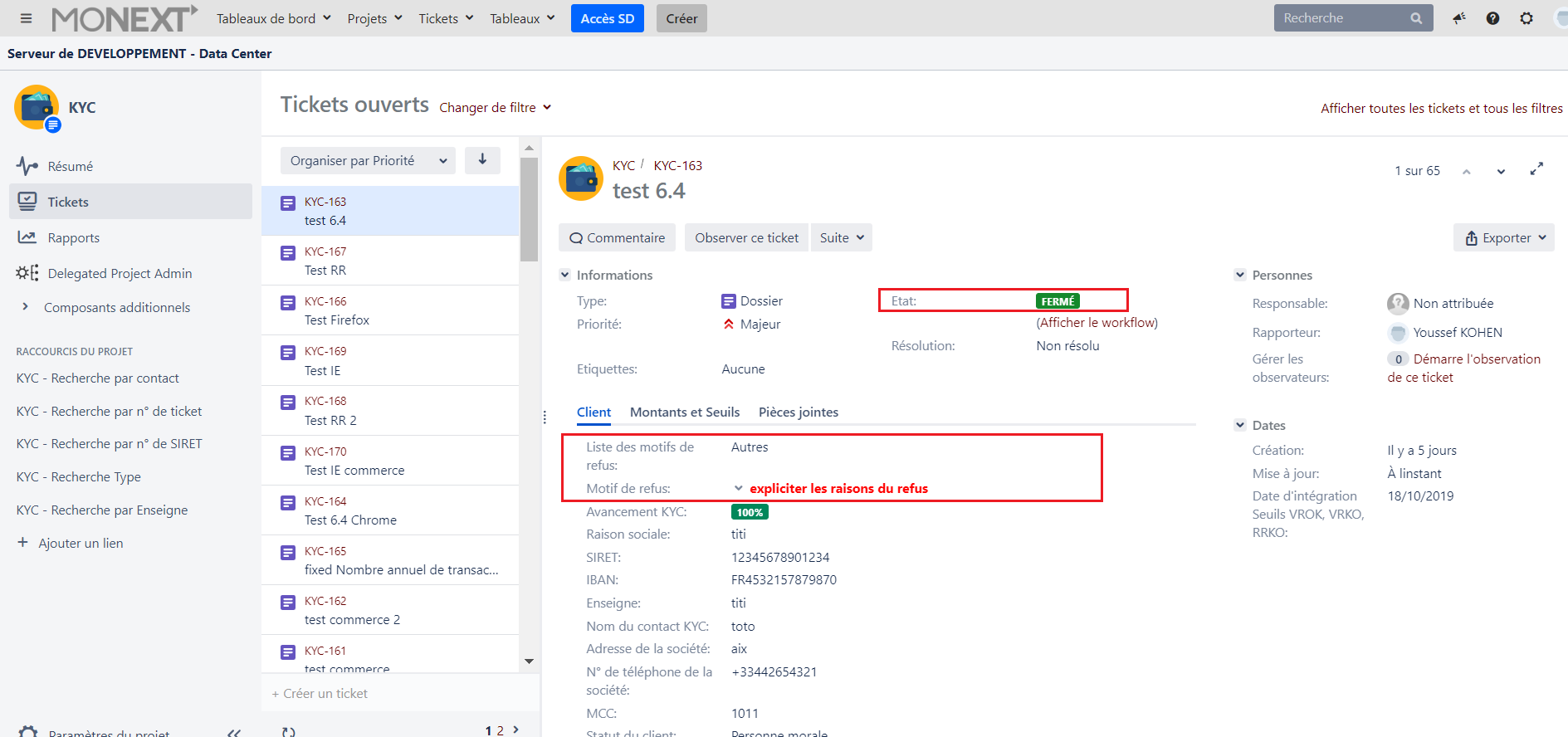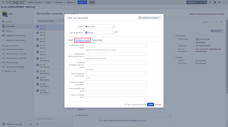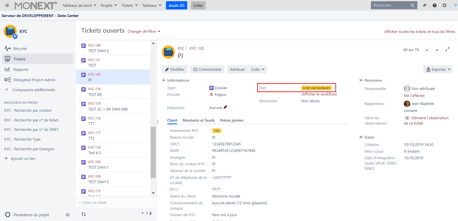 - Se rendre sur le lien suivant : https://online.monext.fr/projects/KYC/summary pour accéder à l'outil JIRA.