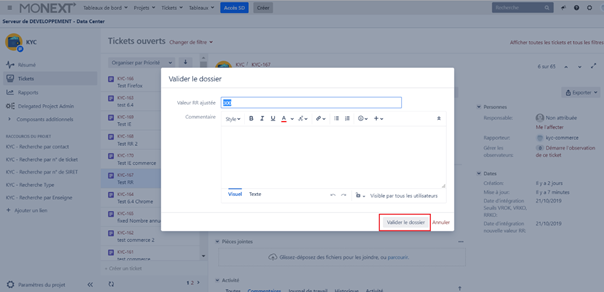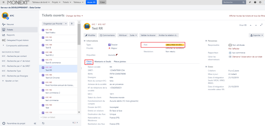 - Se rendre sur le lien suivant : https://online.monext.fr/projects/KYC/summary pour accéder à l'outil JIRA.