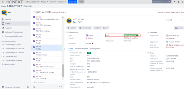 - Se rendre sur le lien suivant : https://online.monext.fr/projects/KYC/summary pour accéder à l’outil JIRA.