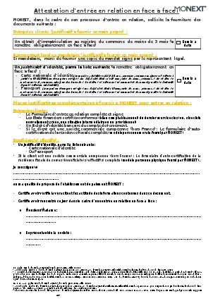 Attestation d'entrée en relation en face à face (à collecter par le Commercial)