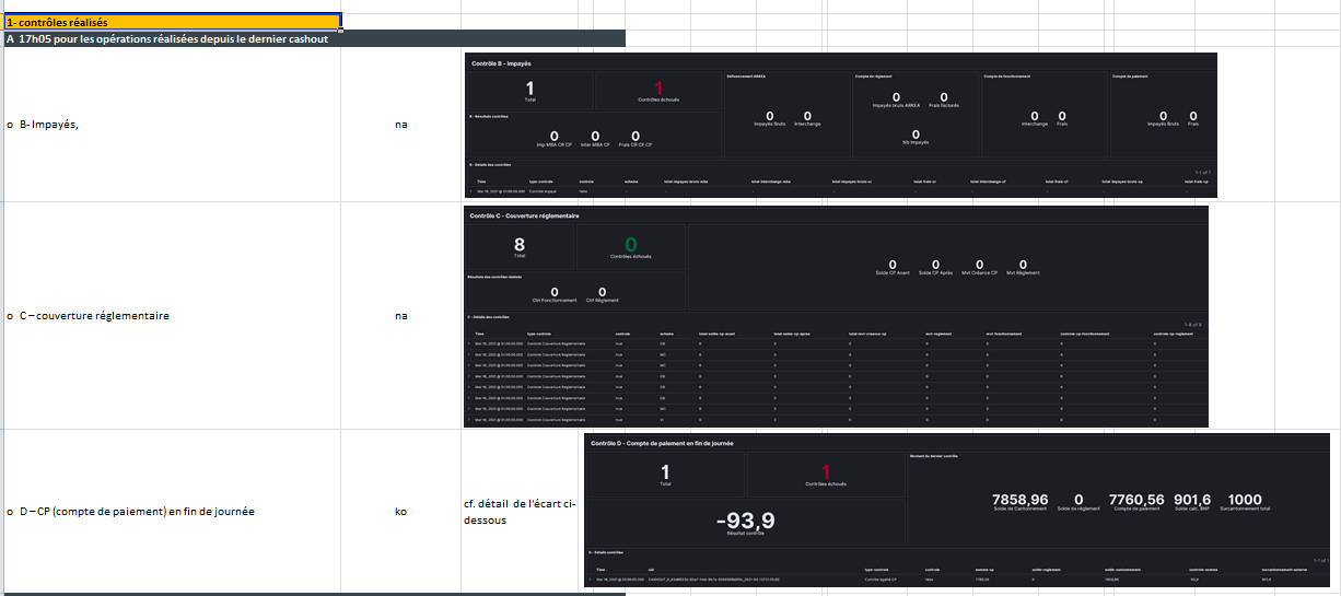 Le besoin est de restituer quotidiennement l'ensemble des informations relatives à l'exécution des contrôles cash et de justifier les contrôles KO.