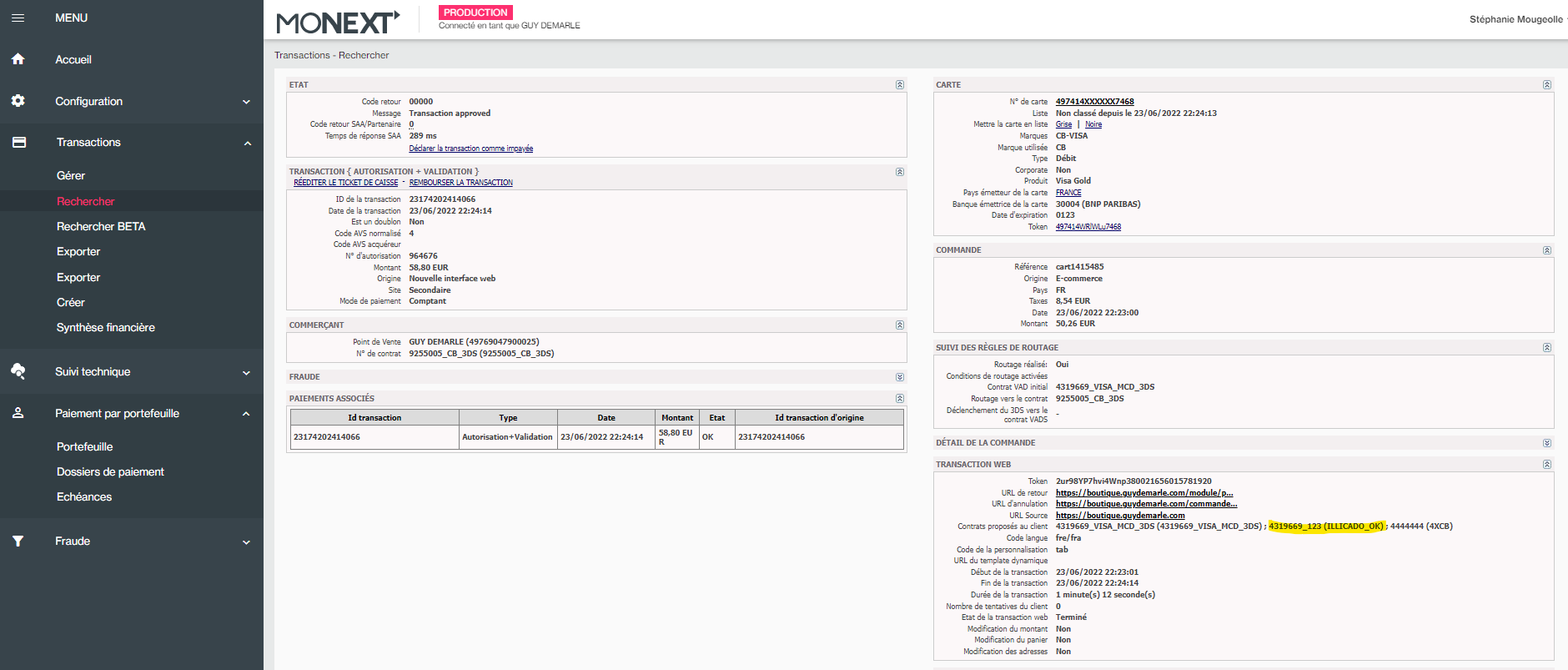 • Extraction payline des transactions CB validées sur le CONTRAT ILLICADO detenu par GUY DEMARLE et processées par LIMONETIK